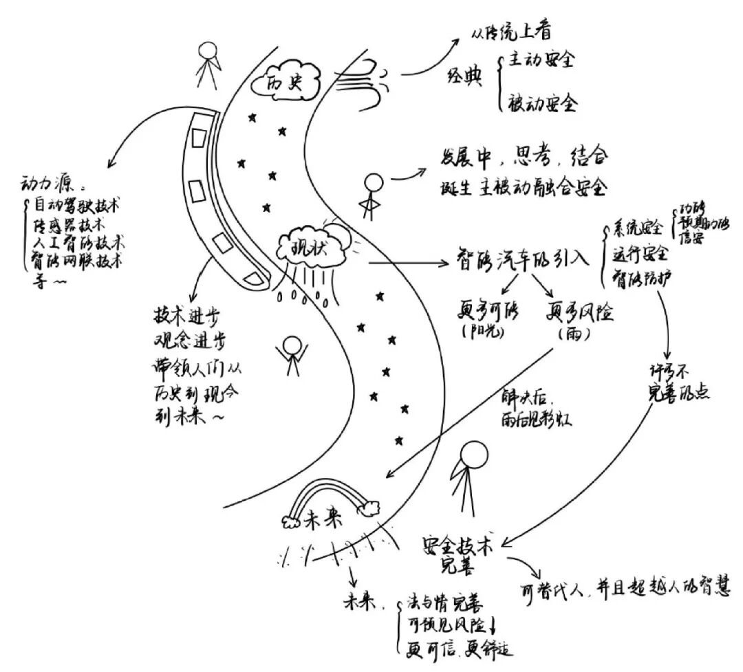 有一次,聂冰冰在课上留下一道开放式作业:“请用一种你喜欢的方式,画出你心中的智能汽车安全。”有一位同学的作品令她至今印象深刻:风雨中,一辆车穿过阴云,驶向彩虹。这一列车代表着汽车安全领域从历史走向未来,从纯技术意义上的安全观走向“法与情的完善”。